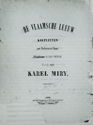 His brother, Vitus Gevaert, moved to Ghent too and around 1844 began a music business with concert hall. One of his hits as a music publisher was De Vlaemsche leeuw, published in 1848. This example shows some changes by the poet Karel Miry himself.