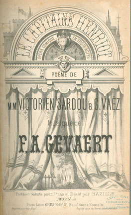 The last opera of Gevaert performed in a Paris’ opera house was Le capitaine Henriot, which was created on 29 December 1864 in the Opéra-Comique.
