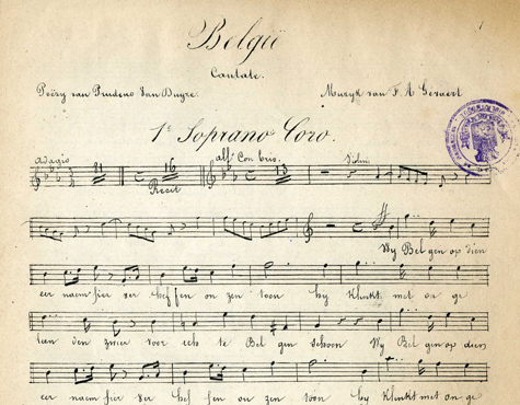 François-Auguste Gevaert devint de plus en plus connu en tant que compositeur. En 1847 il obtient le premier prix du concours de la Société des Beaux Arts de Gand avec sa cantate België, d’après le texte de Prudens Van Duyse.