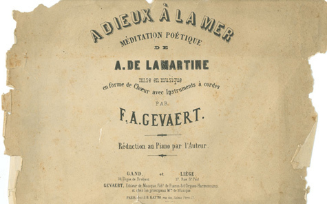 Gevaert a été très productif. A peine trois mois après la création de son deuxième opéra, il crée une œuvre chorale Adieux à la mer le 3 mars 1849. Avec sa ‘méditation poétique’ d’après le texte de Alphonse de Lamartine, il exprimait un adieu symbolique à son pays d’origine.
